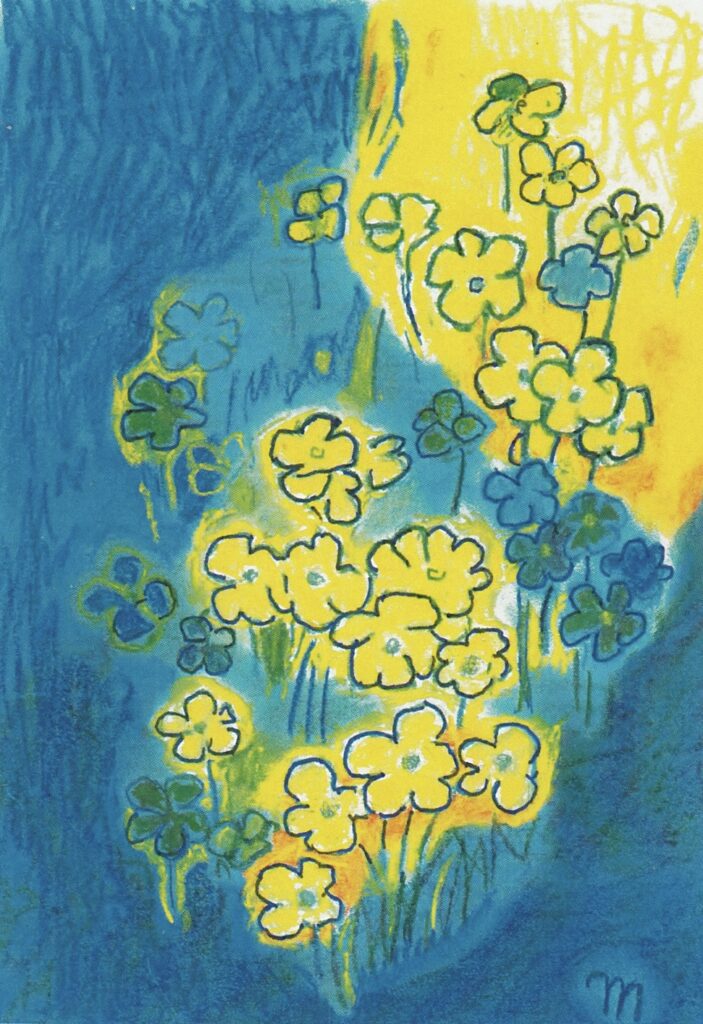 印象に残った花と緑を、形も色もシンプルで明るい作品づくりを心掛けて、
